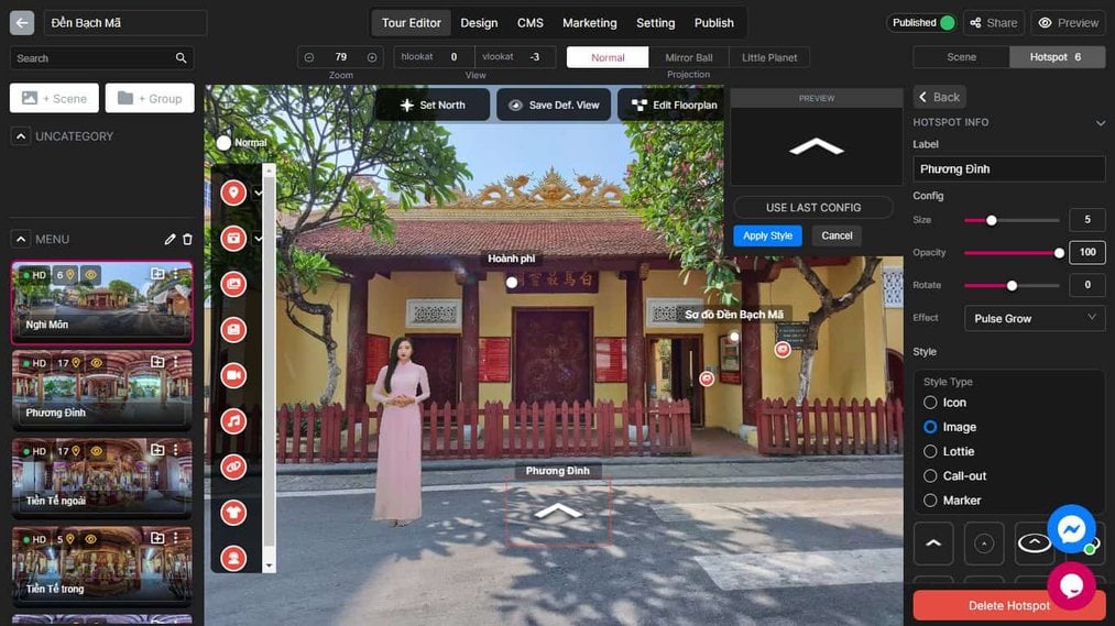 The first step is to create a virtual tour using Panoee’s Studio page. You can upload your own 360° images. You can then edit your panoramas, add hotspots, choose a theme, and customize your virtual tour as you like.